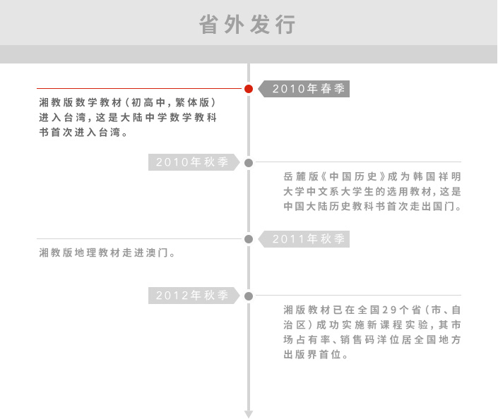 作為在國家新一輪課程改革背景下成立的專業化營銷公司,承擔著集團擁有自主知識產權的國家新課程標準實驗教材(教參、教輔)及相關多元化產品、湘版圖書在全國范圍內的規模化推廣與服務。